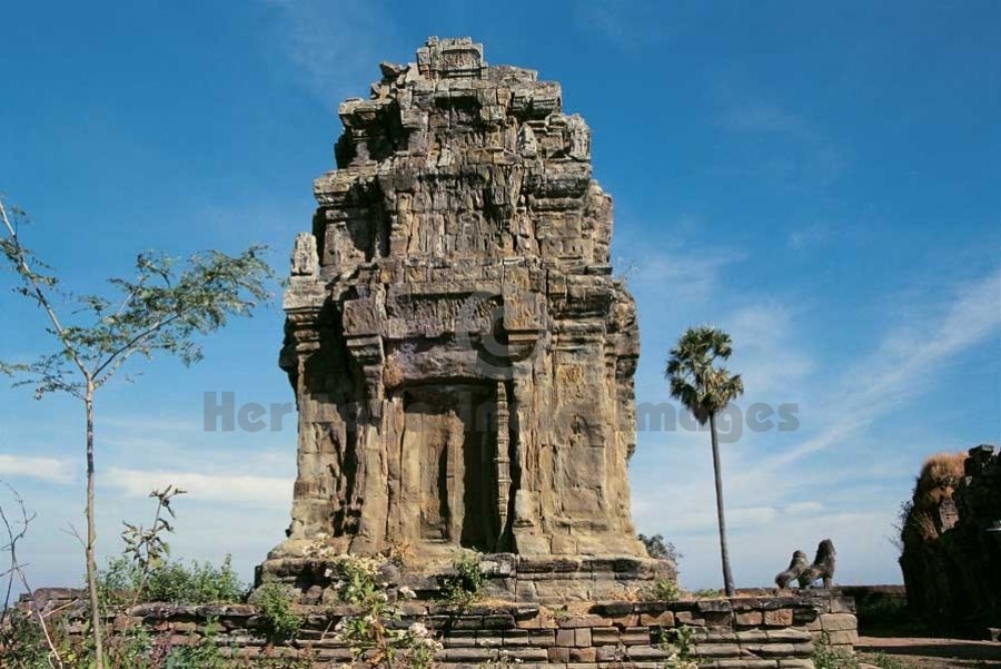 Phnom Kraom - Shrine. The temple on the hill was dedicated to the sacred Hindu Trinity by King Yashovarman I in the 9th century. A panoramic view of Tonle Sap. (Image # 00171).