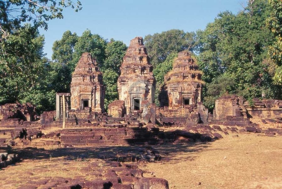 Preah Ko meaning the sacred Ox for Nandi - Shrines. Originally called “Shrī Parmeshwar” and dedicated to Lord Shiv and Goddess Devi, it was built by King Indravarman I in A.D. 889 in the capital “Hariharālaya”. (Image # 00139).