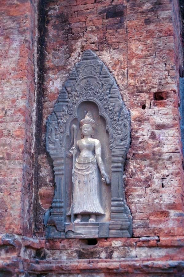 Preah Ko meaning the sacred Ox for Nandi - Dwarpalika in a niche of a Shrine. Originally called “Shrī Parmeshwar” and dedicated to Lord Shiv and Goddess Devi, it was built by King Indravarman I in A.D. 889 in the capital “Hariharālaya”. (Image # 00148).