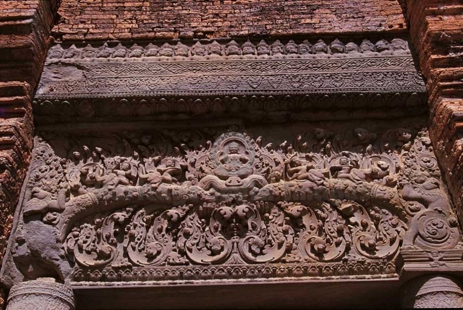 Preah Ko meaning the sacred Ox for Nandi - Shrines. Originally called “Shrī Parmeshwar” and dedicated to Lord Shiv and Goddess Devi, it was built by King Indravarman I in A.D. 889 in the capital “Hariharālaya”. (Image # 00196).