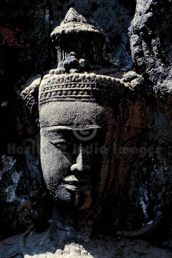Preah Khan - Apsara. Dedicated to Lord Vishnu and Lord Buddh, it was bulit by King Jayavarman VII in AD 1191 in memory of his father. Preah Khan was conscerated in 1191 to Boddhisatva Lokeshwara, Jayavarmeshwar. It was built by Jayavarman VII in the memory of his father Dharanindravarman. The statue was placed in the central sanctuary. There are three temples around the central sanctuary. The north temple is dedicated to Lord Shiv, west temple to Lord Vishnu and south temple to other deities. According to the insctiption found in the temple, 1500 tonnes of copper was used for ornamenting the walls. The entrance of the temple is flanked by devatās and asuras and people were residing inside its premises. It is located on the north of its own baray called Jayatatāk covering 56 hectares. It was a temple, monastery and a centre of learning. (Image # 00224).