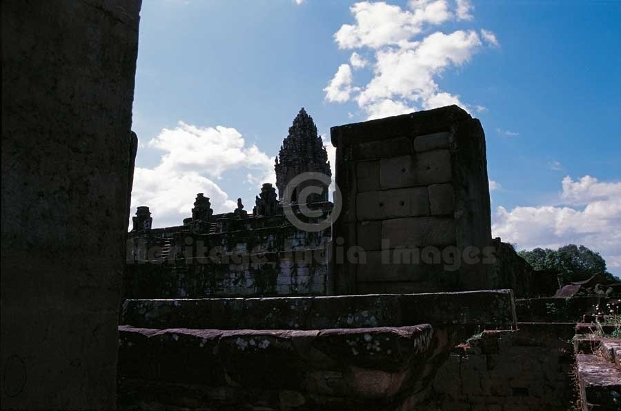 Bakong - Main Temple. Dedicated to Lord Shiv called “Shrī Indereshwar”, it was bulit by King Indravrman I in AD 881. It is the first major temple using extensively sandstone. (Image # 00143).