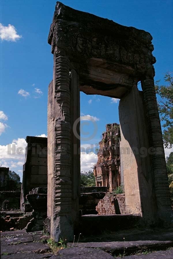 Bakong - Main Temple. Dedicated to Lord Shiv called “Shrī Indereshwar”, it was bulit by King Indravrman I in AD 881. It is the first major temple using extensively sandstone. (Image # 00144).