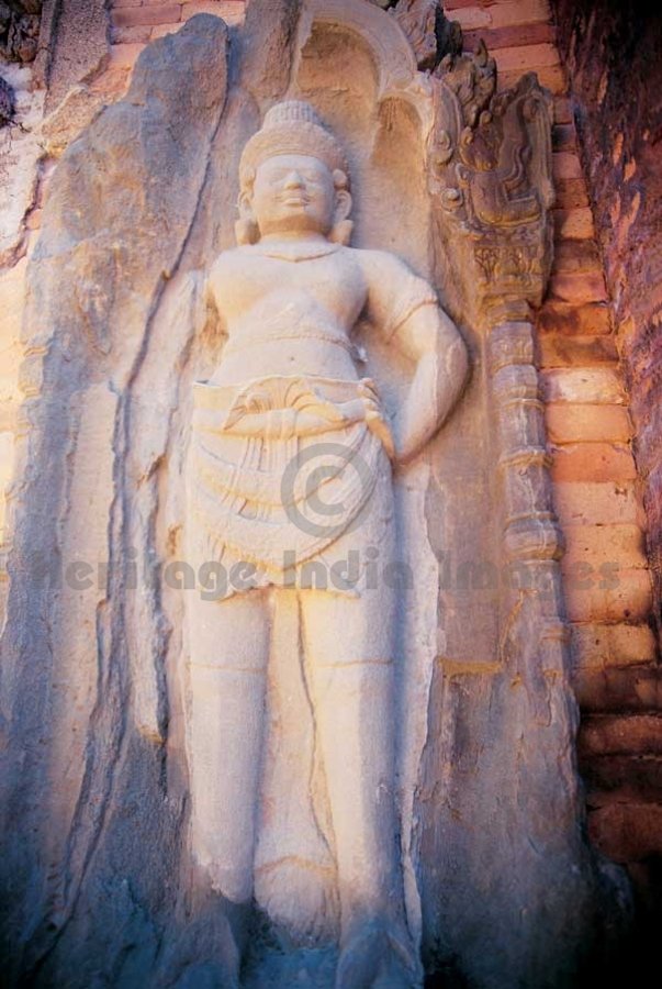 Preah Ko meaning the sacred Ox for Nandi - Dwarpal in a niche of a Shrine. Originally called “Shrī Parmeshwar” and dedicated to Lord Shiv and Goddess Devi, it was built by King Indravarman I in A.D. 889 in the capital “Hariharālaya”. (Image # 00146).