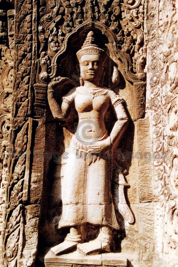 Apsara - Ta Prohm. Dedicated to Prajñaparamitā, it was bulit by King Jayavarman VII in AD 1186 in memory of his mother. It was left unrestored after its discovery. (Image # 00256).