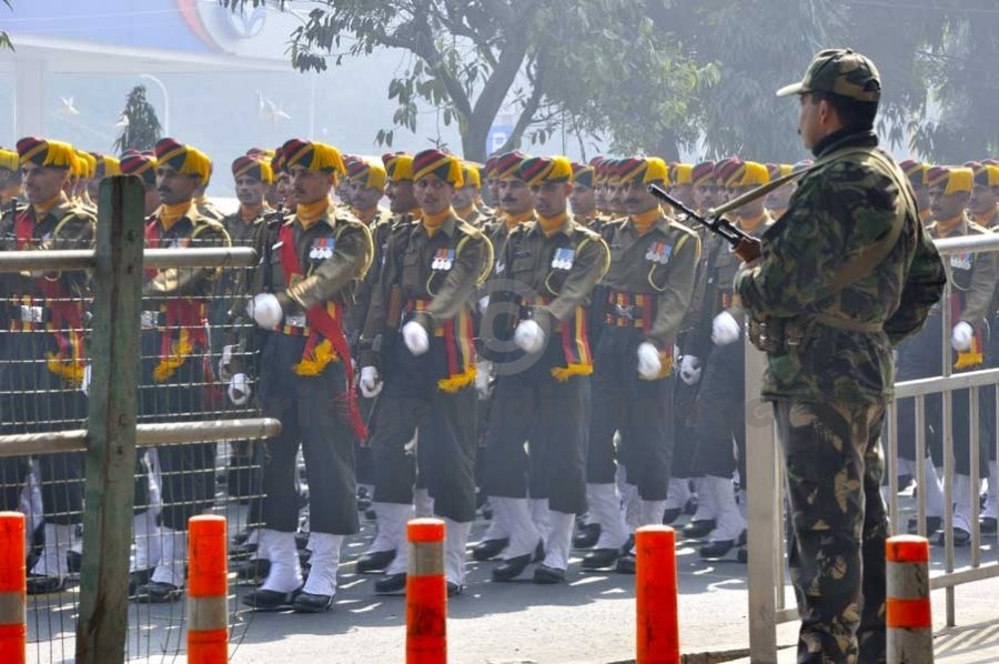 To mark Republic Day, a parade is held in the capital, New Delhi, from the Raisina Hill near the Rashtrapati Bhavan (the President's residence), along the Rajpat, past India Gate to Red Fort. Prior to its commencement, the Prime Minister lays a floral wreath at the Amar Jawan Jyoti, a memorial to unknown soldiers at the India Gate at one end of Rajpath, which is followed by two minutes silence in the memory of unknown soldiers. In Republic Day Parade, the defense forces in their ceremonious dresses along with their latest equipment and cultural activities of India’s all states are showcased.