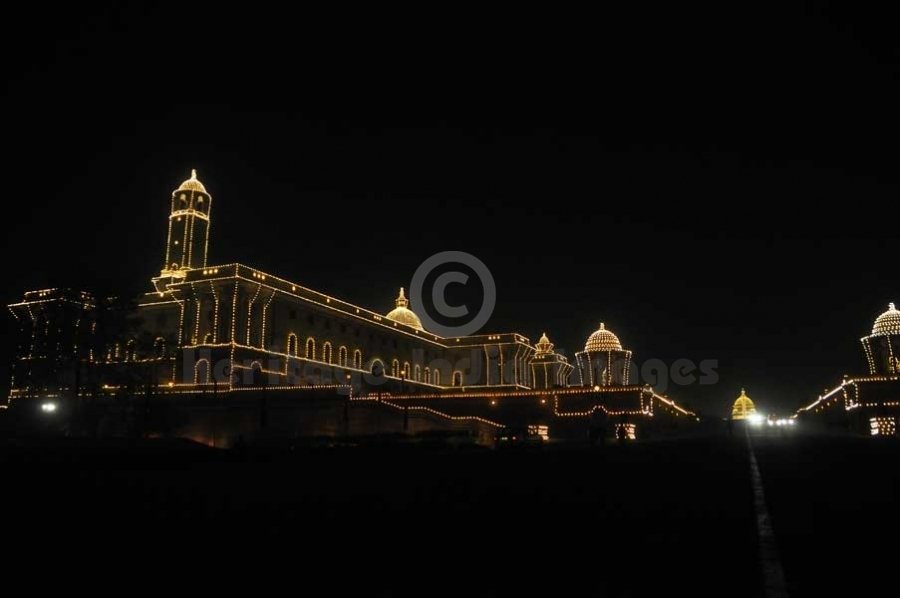 Rashtrapati Bhavan at night during Republic Day Celebrations