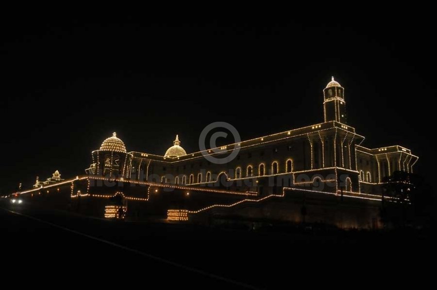 Rashtrapati Bhavan at night during Republic Day Celebrations