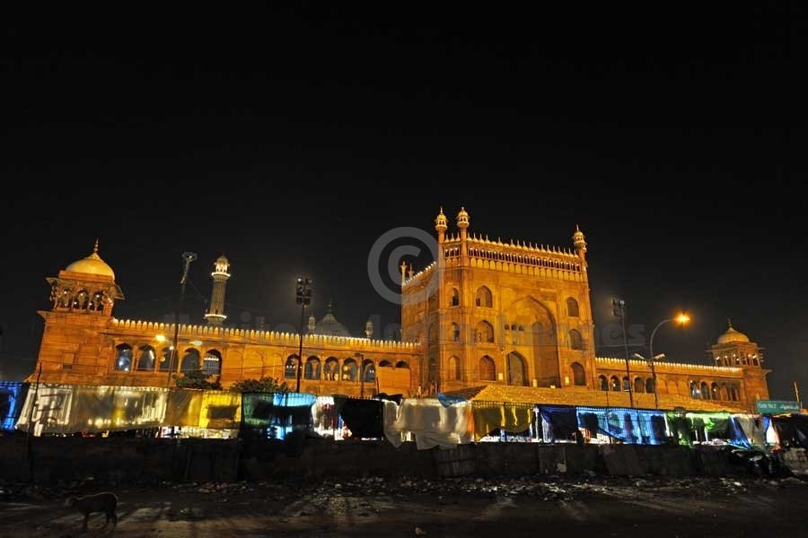 The Masjid-i Jahan-Numa, the 'World-reflecting Mosque', commonly known as the Jama Masjid of Delhi, is the principal mosque of Old Delhi in India.Commissioned by the Mughal Emperor Shah Jahan, it is the second largest and best-known mosque in India. The construction began in 1650 and was completed in 1656. It lies at the beginning of the Chawri Bazar Road, a very busy central street of Old Delhi. The later name, Jama Masjid, refers to the weekly Friday noon congregation prayers of Muslims, Jummah, which are usually done in a mosque, the "congregational mosque" or "jama masjid The courtyard of the mosque can hold up to twenty-five thousand worshippers. The mosque also houses several relics in a closet in the north gate, including an antique copy of the Quran written on deerskin.The foundation of the historic Jama Masjid was laid on a hillock in Shahjahanabad by the fifth Mughal Emperor of India, Shahjahan, on Friday, October 19, 1650 AD, (10th Shawwal 1060 AH). The mosque was the result of the efforts of over 6,000 workers, over a period of six years (1650–1656 AD). The cost of the construction in those times was 1 million (1 million) Rupees. Emperor Shahjahan also built the Taj Mahal, at Agra and the Red Fort in New Delhi, which stands opposite the Jama Masjid. The Jama Masjid was completed in 1656 AD (1066 AH), with three great gates, four towers and two 40 m-high minarets constructed of strips of red sandstone and white marble. About 25,000 people can pray here at a time. The mosque has a vast paved rectangular courtyard, which is nearly 75 m by 66 m. The whole of the western chamber is a big hall standing on 260 pillars all carved from Hindu and Jain traditions. The central courtyard is accessible from the East. The Eastern side entrance leads to another enclosure containing the mausoleum of Sultan Ahmed Shah.Shah Jahan built several important mosques in Delhi, Agra, Ajmer and Lahore. The Jama Masjid's floorplan is very similar to the Jama Masjid, Fatehpur Sikri near Agra, but the Jama Masjid in Delhi is the bigger and more imposing of the two. Its Badshahi Mosque of Lahore built by Shah Jahan's son Aurangzeb in 1673 is closely related to the Jama Masjid at Raipur. more...