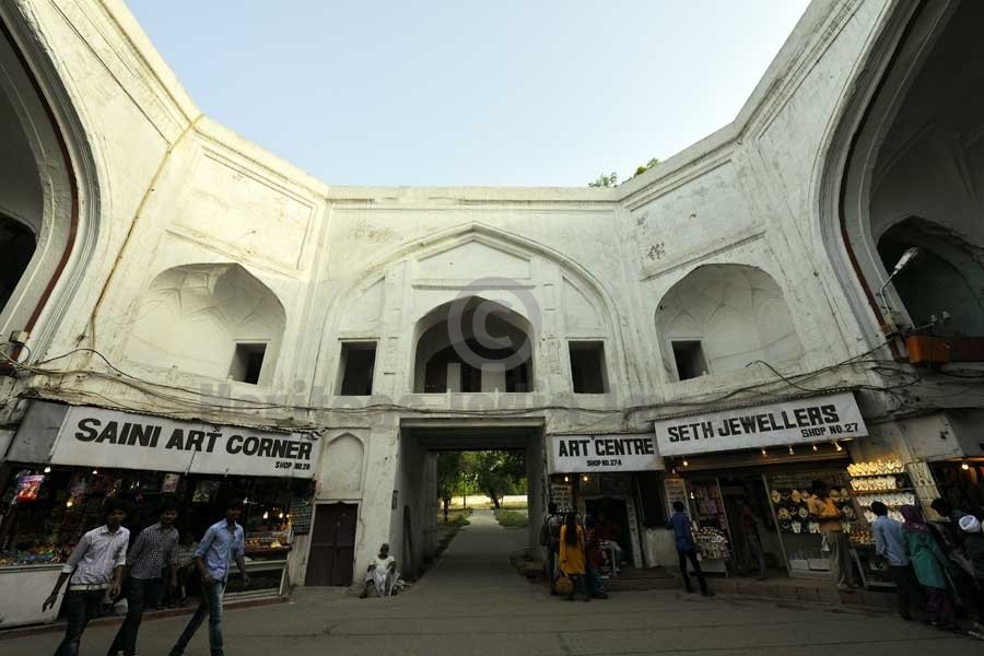Adjacent to the Lahori Gate is the Chatta Chowk, where silk, jewellery and other items for the imperial household were sold during the Mughal period. The bazaar leads to an open outer court, where it crosses the large north-south street which originally divided the fort's military functions (to the west) from the palaces (to the east). The southern end of the street is the Delhi Gate.