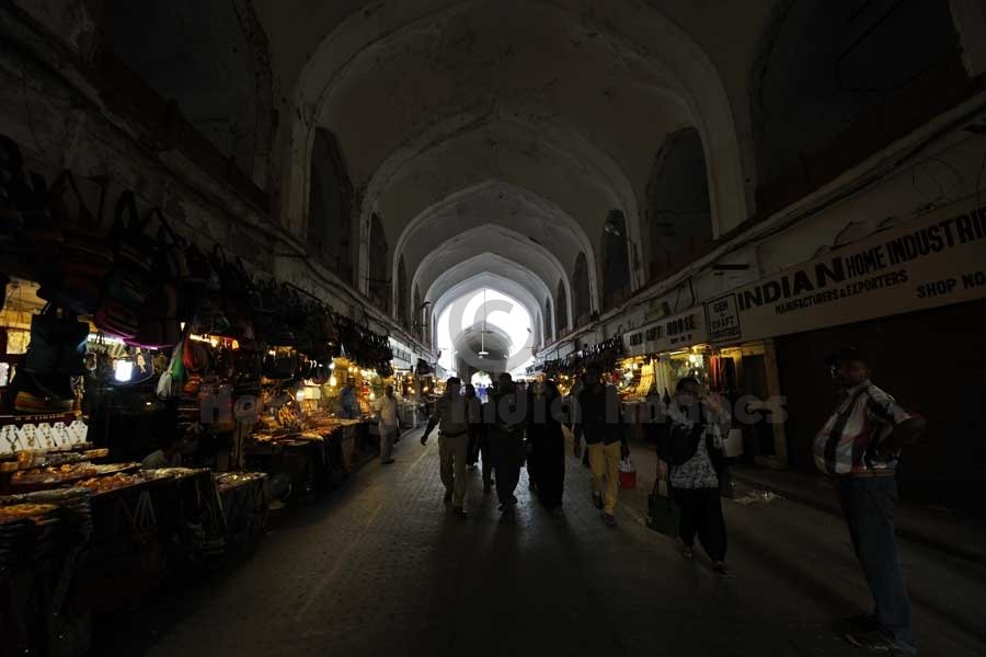 Adjacent to the Lahori Gate is the Chatta Chowk, where silk, jewellery and other items for the imperial household were sold during the Mughal period. The bazaar leads to an open outer court, where it crosses the large north-south street which originally divided the fort's military functions (to the west) from the palaces (to the east). The southern end of the street is the Delhi Gate.