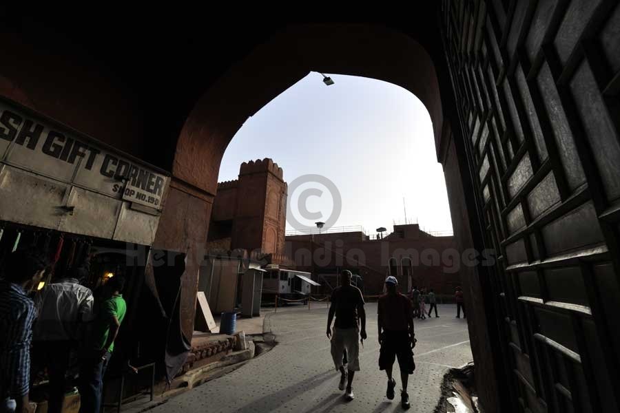 Adjacent to the Lahori Gate is the Chatta Chowk, where silk, jewellery and other items for the imperial household were sold during the Mughal period. The bazaar leads to an open outer court, where it crosses the large north-south street which originally divided the fort's military functions (to the west) from the palaces (to the east). The southern end of the street is the Delhi Gate.