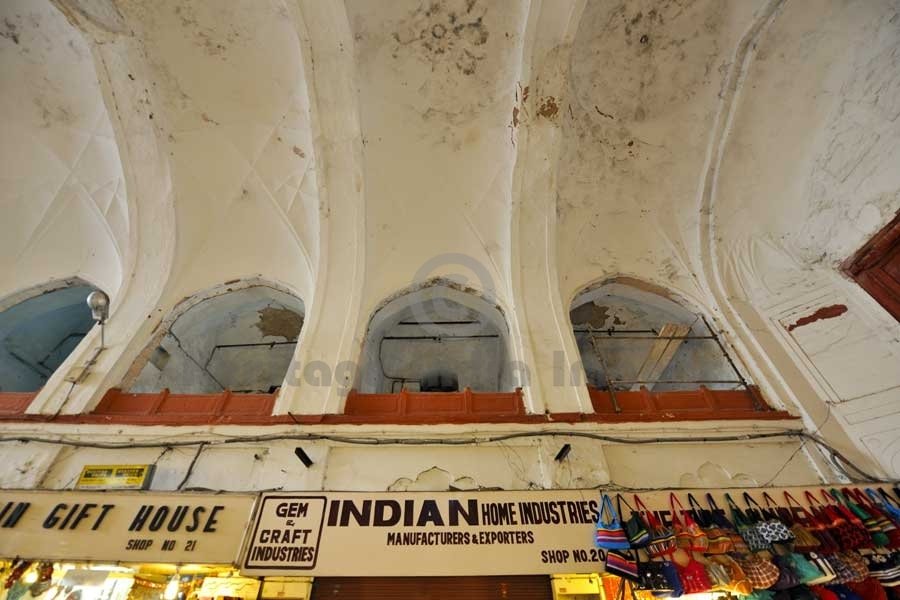 Adjacent to the Lahori Gate is the Chatta Chowk, where silk, jewellery and other items for the imperial household were sold during the Mughal period. The bazaar leads to an open outer court, where it crosses the large north-south street which originally divided the fort's military functions (to the west) from the palaces (to the east). The southern end of the street is the Delhi Gate.
