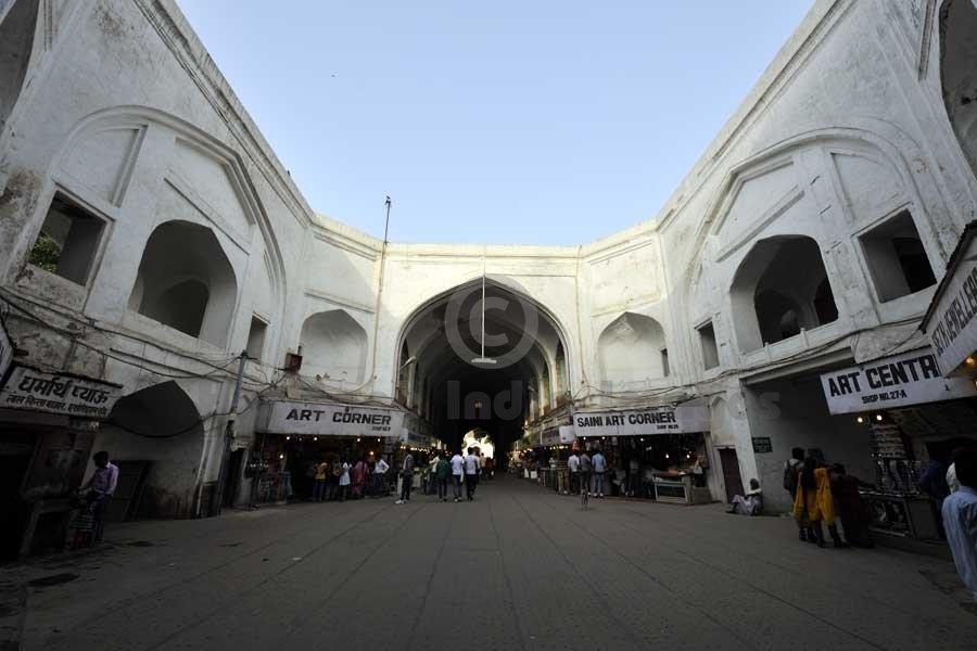 Adjacent to the Lahori Gate is the Chatta Chowk, where silk, jewellery and other items for the imperial household were sold during the Mughal period. The bazaar leads to an open outer court, where it crosses the large north-south street which originally divided the fort's military functions (to the west) from the palaces (to the east). The southern end of the street is the Delhi Gate.