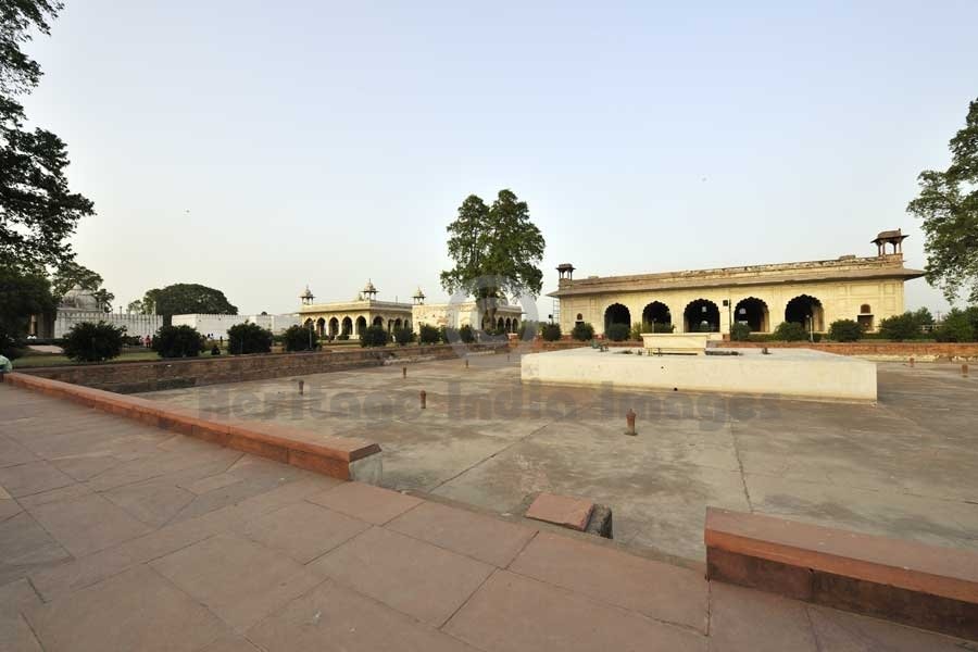 Adjacent to the Lahori Gate is the Chatta Chowk, where silk, jewellery and other items for the imperial household were sold during the Mughal period. The bazaar leads to an open outer court, where it crosses the large north-south street which originally divided the fort's military functions (to the west) from the palaces (to the east). The southern end of the street is the Delhi Gate.