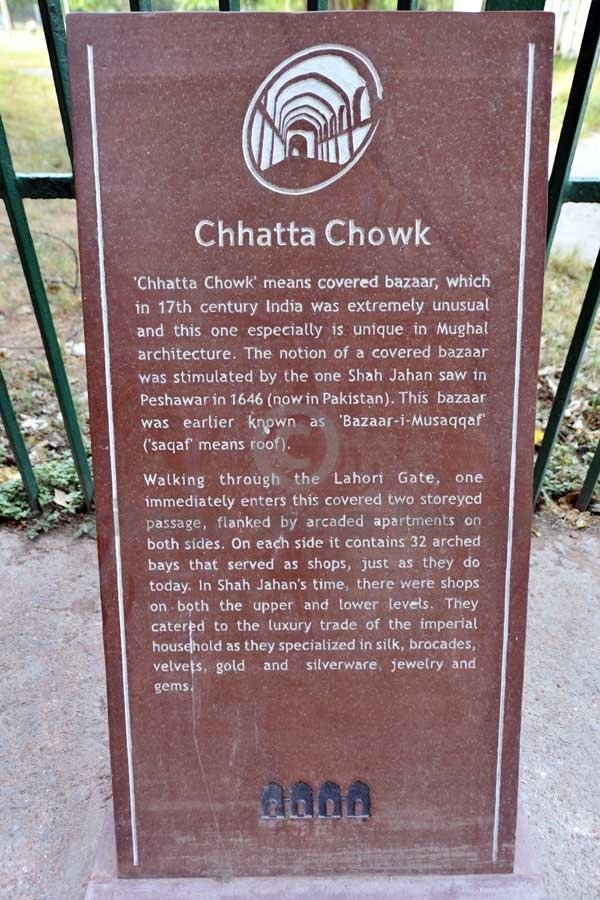 Adjacent to the Lahori Gate is the Chatta Chowk, where silk, jewellery and other items for the imperial household were sold during the Mughal period. The bazaar leads to an open outer court, where it crosses the large north-south street which originally divided the fort's military functions (to the west) from the palaces (to the east). The southern end of the street is the Delhi Gate.