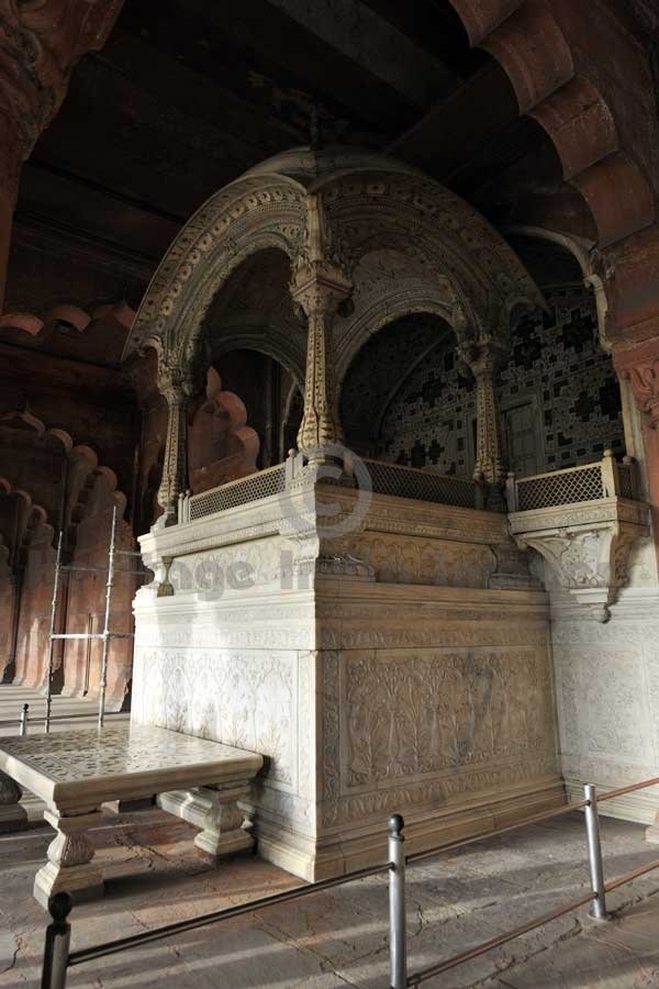 The inner main court to which the Nakkar Khana led was 540 feet (160 m) wide and 420 feet (130 m) deep, surrounded by guarded galleries. On the far side is the Diwan-i-Aam, the Public Audience Hall.The hall's columns and engrailed arches exhibit fine craftsmanship, and the hall was originally decorated with white chunam stucco. In the back in the raised recess the emperor gave his audience in the marble balcony.The Diwan-i-Aam was also used for state functions. The courtyard (mardana) behind it leads to the imperial apartments.
